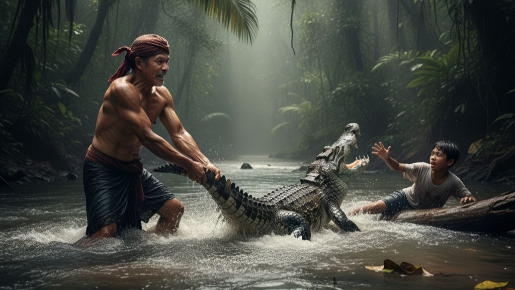 Tanpa pikir panjang, Ramli langsung menghampiri dan nekat memegang ekor buaya tersebut. Ia menarik ekor sang predator sekuat tenaga hingga gigitan pada tubuh anaknya terlepas. Aksi nekat ini membuahkan hasil, Feldi berhasil ditarik ke daratan dalam kondisi luka-luka.