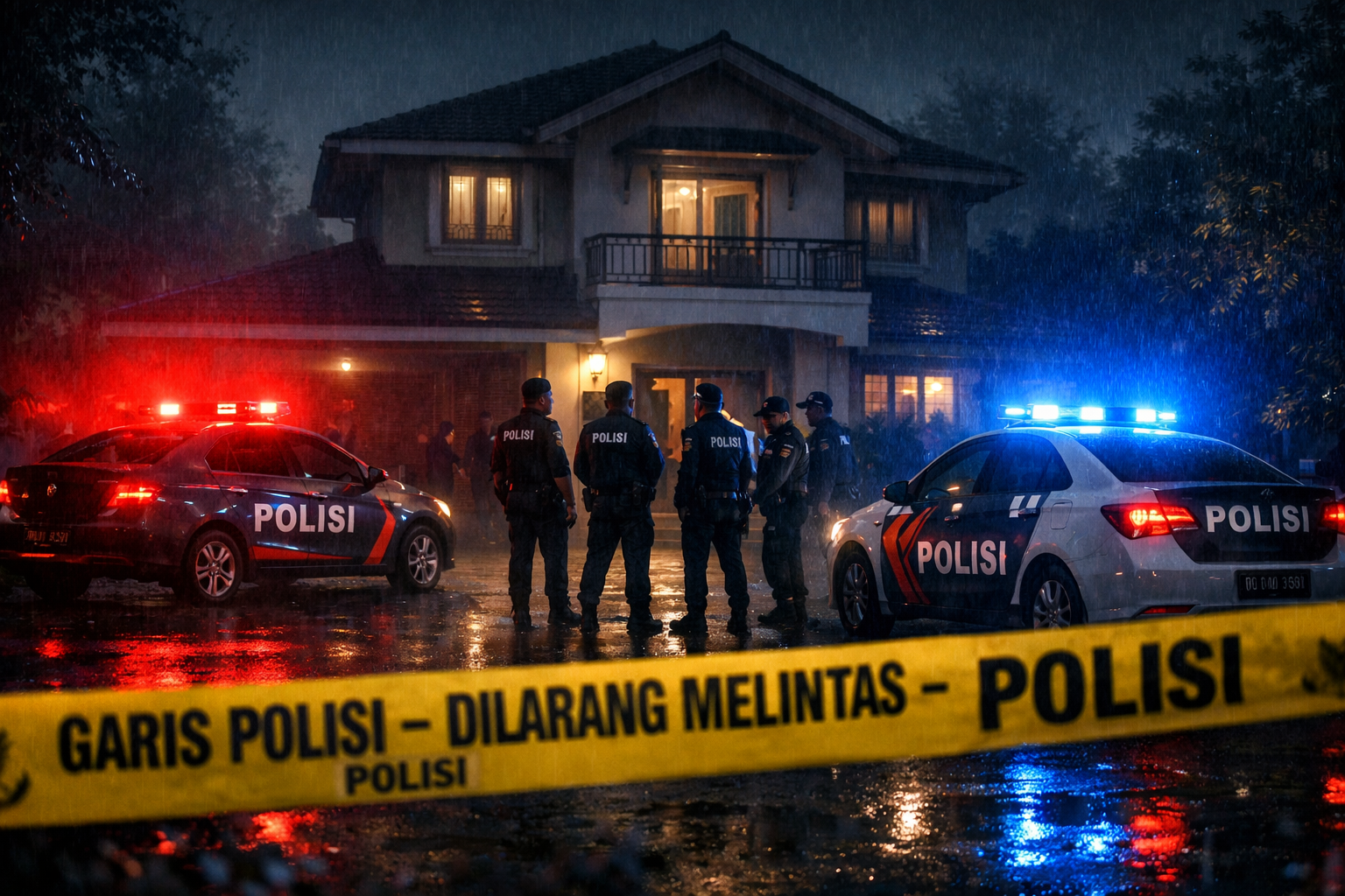Ilustrasi polisi melakukan olah TKP pada kejadian pembunuhan di Lalodati. Foto: Grafis Ai/kendarinesia